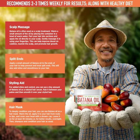 Batana Oil for Hair Growth: 100% Pure & Organic Raw Botana Oil from Honduras – Natural Hair & Scalp Care for Thicker, Stronger Hair – Best for Men & Women - 4 FL OZ