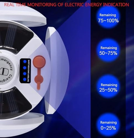 [1200 Lumens] Rechargeable Camping Lantern with Hook, IPX7 Waterproof LED Emergency Light - 1800mAh Battery, Solar/USB Charging, 5 Light Modes for Tent/Hiking/Hurricane
