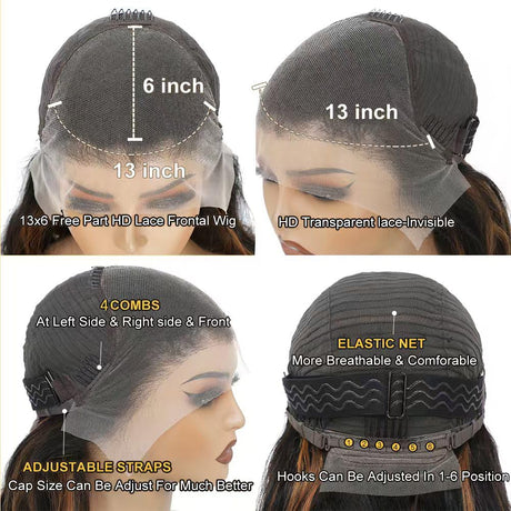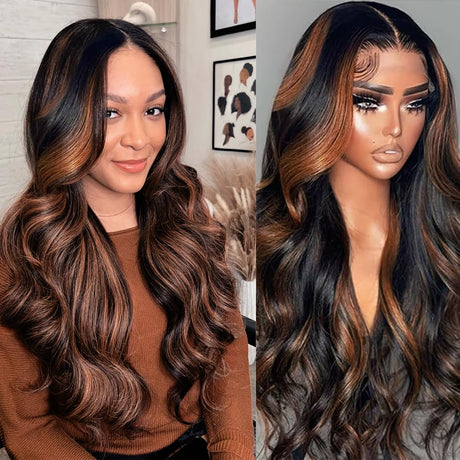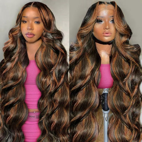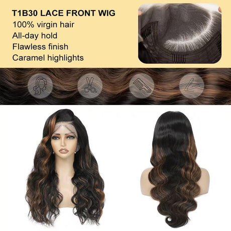28 Inch Honey Blonde Ombre Lace Front Wig Human Hair 200 Density 13X6 Highlight Body Wave Lace Front Wig Human Hair Pre Plucked With Baby Hair Glueless HD Lace Frontal Wig for Women T1B/30 Colored Wig