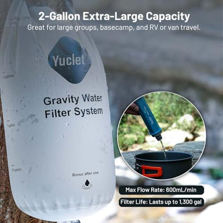 Gravity Water Filter System w/ 2-Gal Bag & 0.1-Micron Water Filter Straw, Gravity-Fed Water Filtration System Water Purifier Survival for Camping, Backpacking, Hiking & Emergency Preparedness