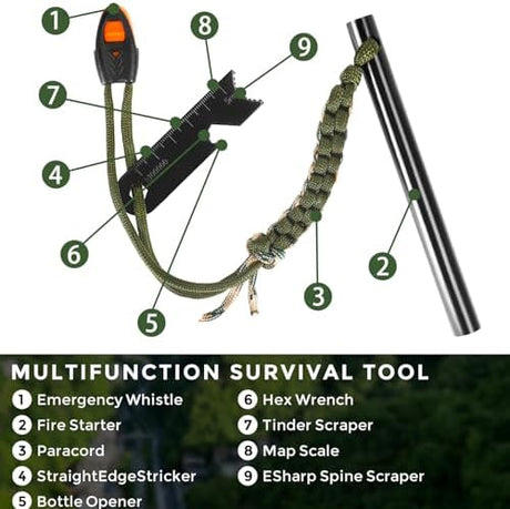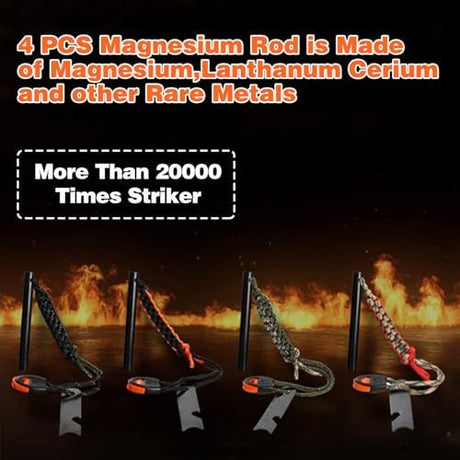 4 Pack Ferro Rod Fire Starter Flint Fire Starter Survival Tool Flint and Steel Fire Starter Kit 6-in-1, Portable Ferro Rod Striker with Paracord Handlead for Campfires Survival Emergency Kit