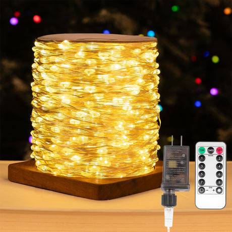 ZELUXDOT Fairy Lights Plug in,200FT 600LEDs Waterproof Led String Lights,8 Modes Remote Twinkle Light for Outdoor Indoor Christmas Wedding Birthday Garden Party Decorations,Silver Wire,Warm White
