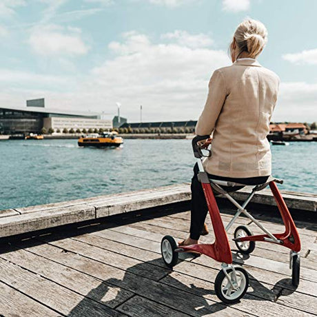 byACRE Carbon Ultralight Rollator Walker with Organizer Bag, Red, Regular Track