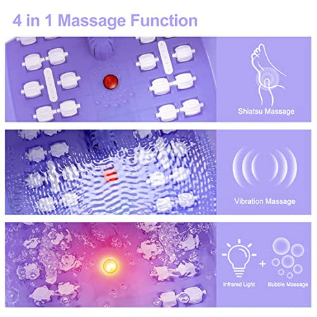 Foot Spa Bath Massager with Heat Bubbles and Vibration Massage and Jets, 16 OZ Calming Lavender Foot Soak Epsom Salt, Koenvenden Foot Soaker With Red Light, 22 Massage Rollers, Adjustable Temp -Purple
