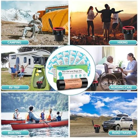 Portable Toilet Bags Poo Gel Set, 8 Gallon Camping Toilet Bags with Portable Toilet Absorbent Gel, Compostable Portable Potty Bags for Camping Outdoor Hiking