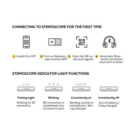 Stemoscope® II Smart Bluetooth Stethoscope - Listen to and Record Heart Rhythms and Lung Sounds - Digital Stethoscope