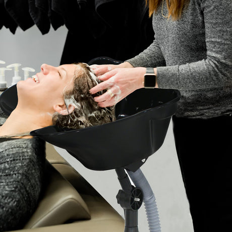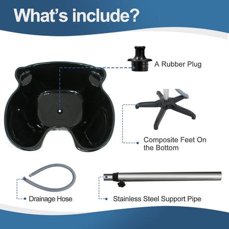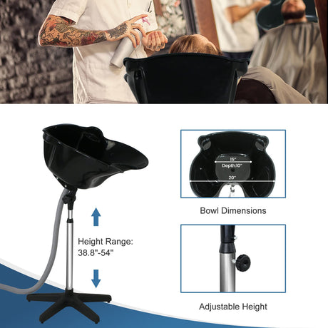 Height Adjustable Portable Salon Deep Shampoo Basin Sink Hair Treatment Bowl with Drain Hose Black