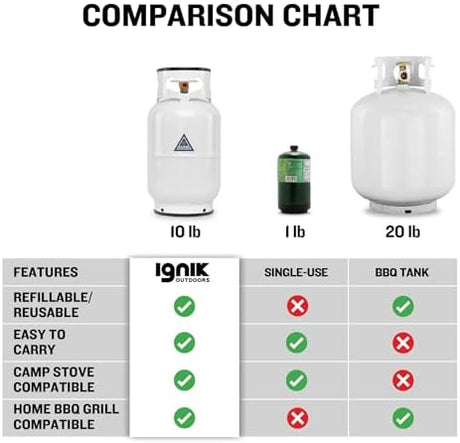 Ignik Refillable Gas Growler Deluxe 5-Pound Propane Tank with Carry Case and Adapter Hose