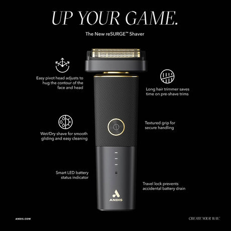 Andis 17300 reSURGE Electric Lithium Titanium Precision Foil Wet/Dry Rechargeable Shaver, Black