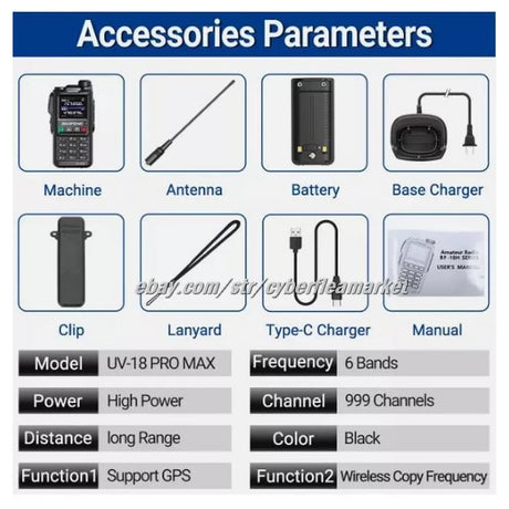 BaoFeng UV18 Pro Max GPS Air Band Walkie Talkie NOAA Type-C Long Range Ham Radio