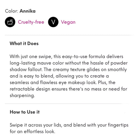 Belle En Argent Eyeshadow Stick In ANNIKA 0.8g Travel Size Mini