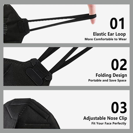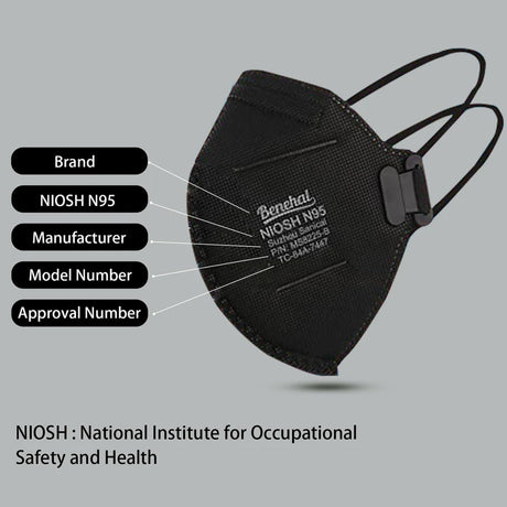 benehal N95 Mask Particulate Respirators, Pack of 50 N95 Face Masks, Individually Wrapped,Black