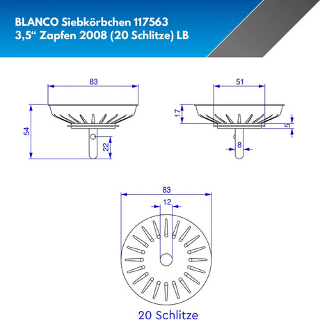 Blanco Strainer Basket 3.5 Inch with Pins 20 Slits Black