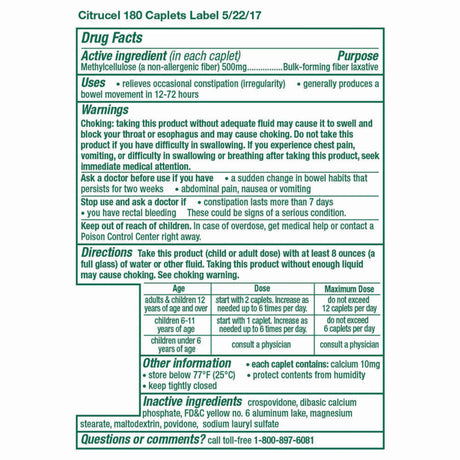 Citrucel Fiber Therapy Caplets for Irregularity, Easy to Swallow Methylcellulose , 180 Count