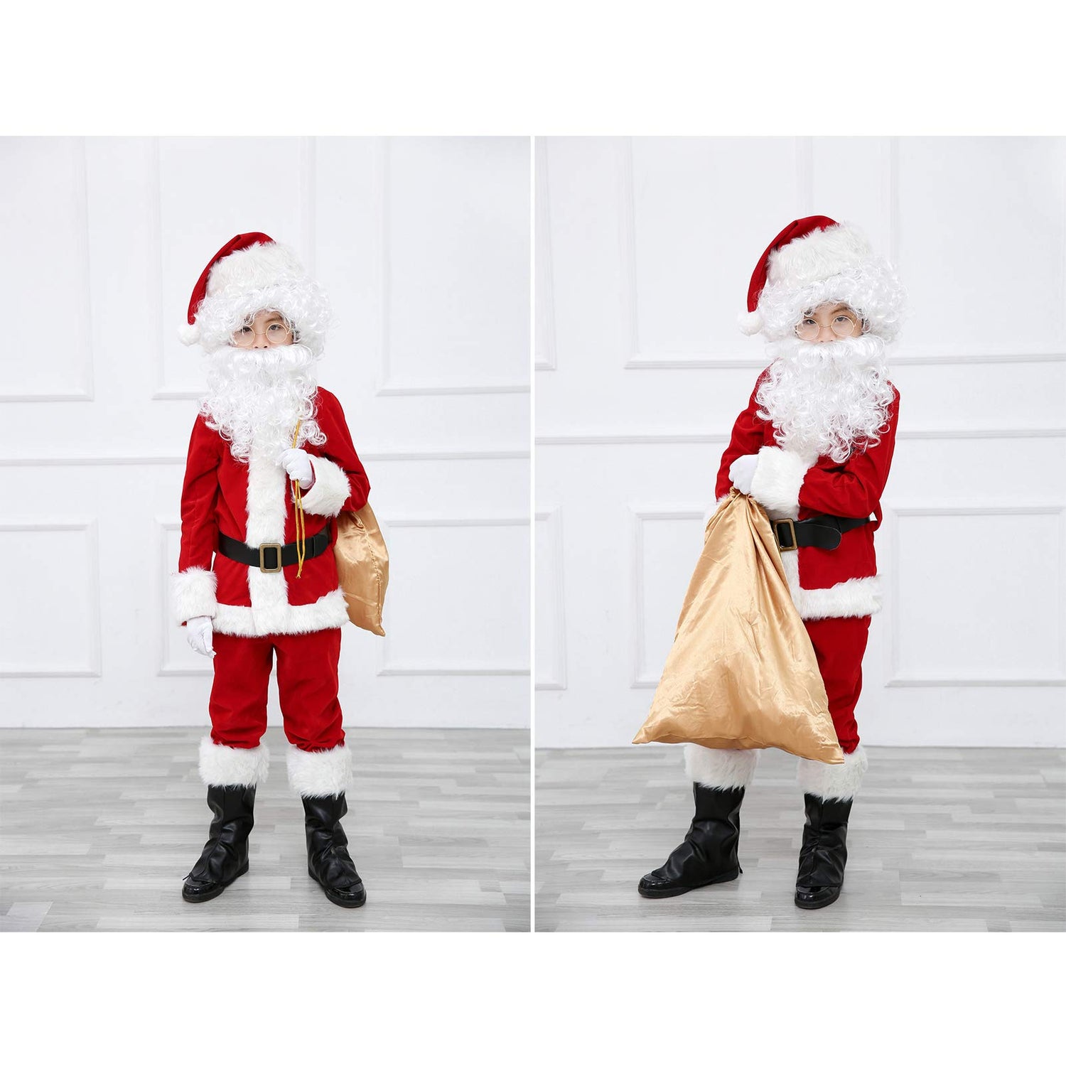 ELFJOY Children's Santa Suit Kids Christmas Halloween Costume Cosplay Set of 11 Pcs (Small)