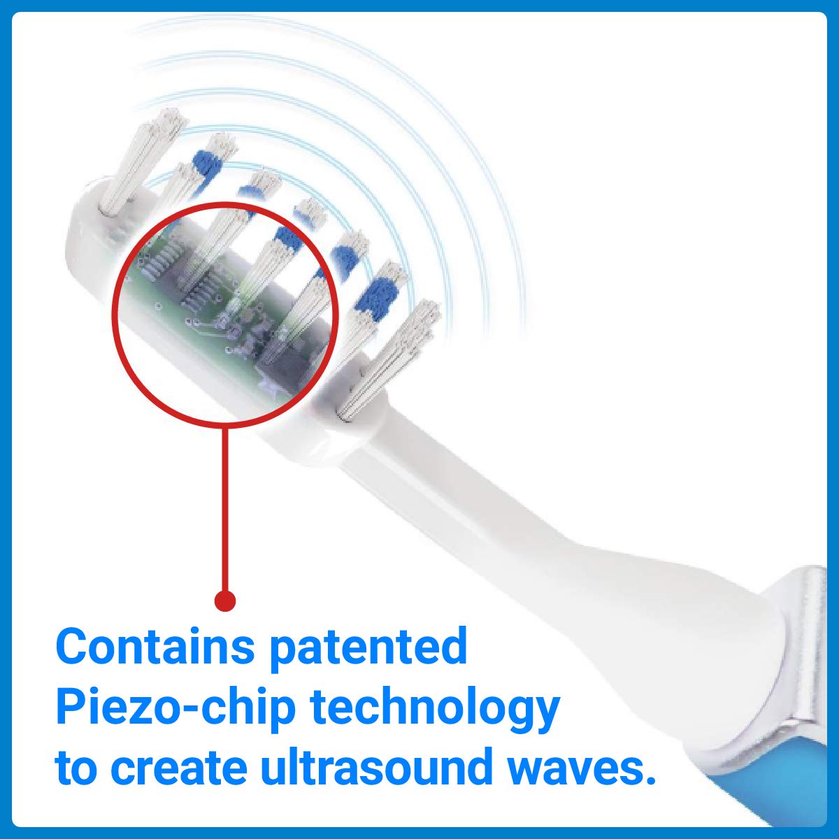 - WAVE, DON’T BRUSH: Emmi-dent changes the way you clean your teeth with innovative ultrasound technology. Just hold & wave the electric toothbrush head over teeth & gums to let the ULTRASOUND Waves do the cleaning – not the bristles. Our patented Piezo-chip technology embedded inside the brush-head create ultrasound waves. The bristles serve as antennas to deliver targeted waves directly onto teeth and gums. No brushing, no vibrations, no unpleasant sensations for a most gentle cleaning action.