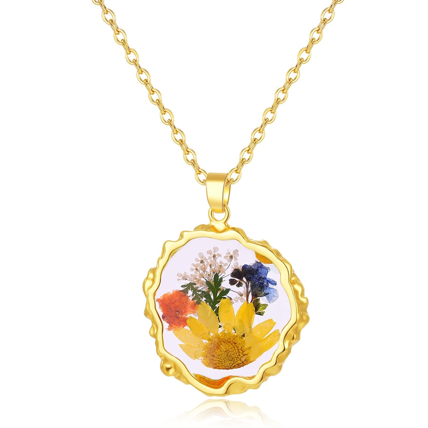 Hefestus Birth Flower Necklaces for Women,October Month Marigold Real Pressed Flower Necklace,Boho-Style Personalized Jewelry,Handmade Floral Pendant,Thoughtful Gift for Christmas,Birthday|18" (Gold)