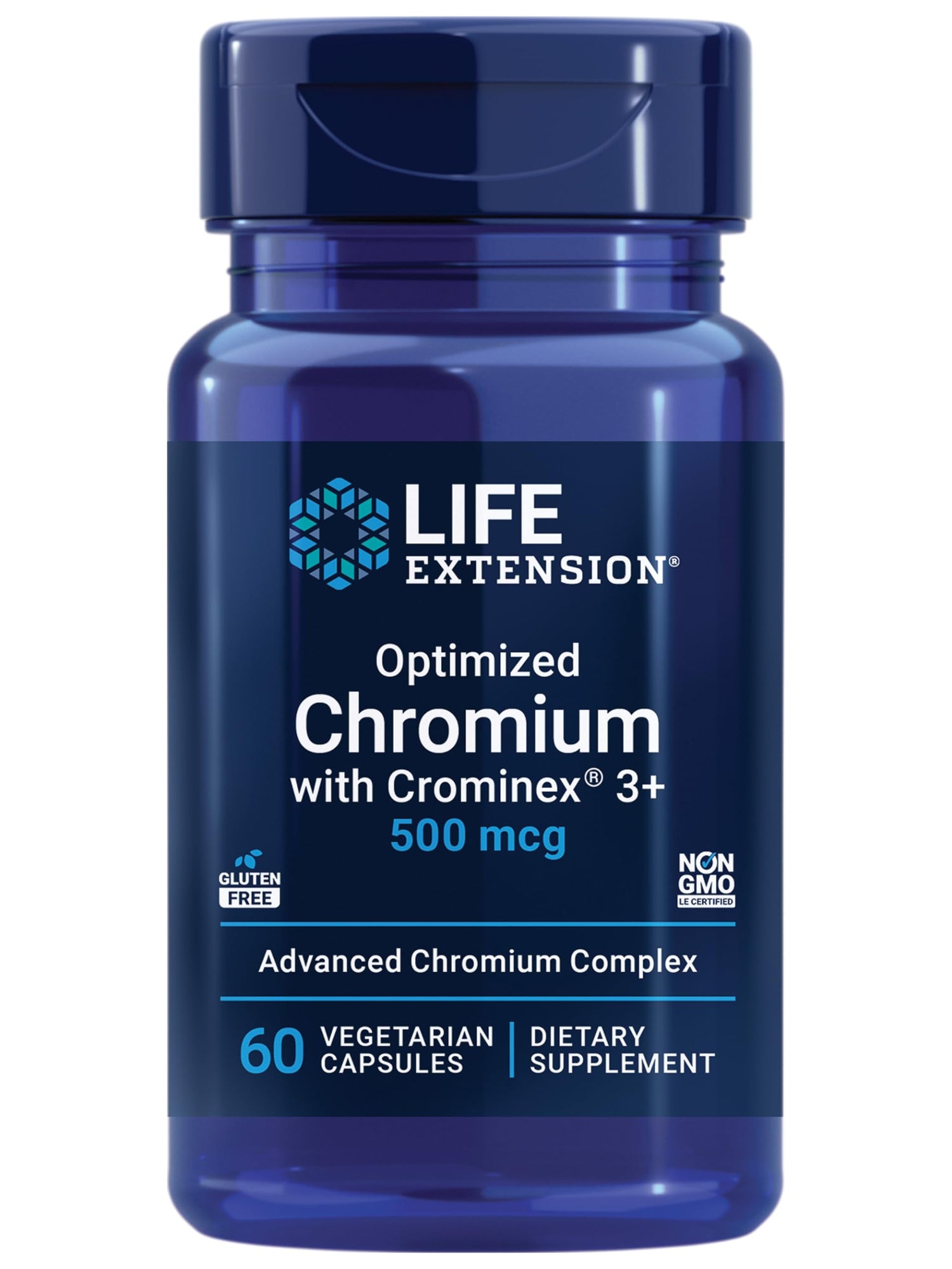 Life Extension Optimized Chromium with Crominex 3+ 500 mcg, Metabolism Health, Healthy Balance, Vegetarian, Gluten Free, Non-GMO, 500 mcg, 60 Vegetarian Capsules