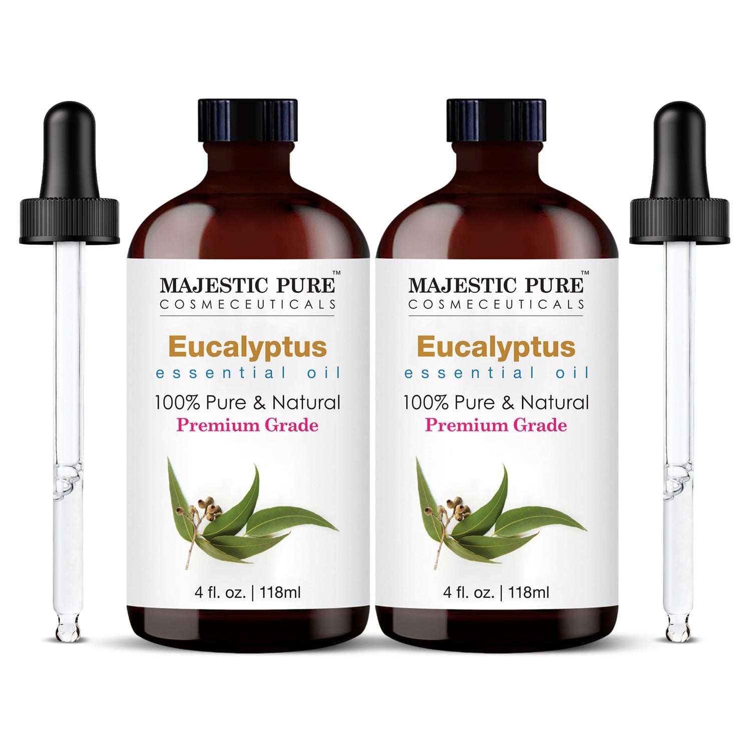 Majestic Pure Eucalyptus Essential Oil | 100% Pure and Natural Eucalyptus Oil | Premium Grade Essential Oils for Hair Care, Home Diffusers, Aromatherapy, Massage and Humidifiers | 4 Fl Oz (Pack of 2)