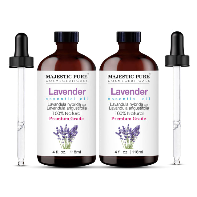 Majestic Pure Lavender Essential Oil | 100% Natural | Premium Grade Essential Oils for Hair Care, Home Diffusers, Skin, Aromatherapy, Massage and Humidifiers | 4 Fl Oz (Pack of 2)