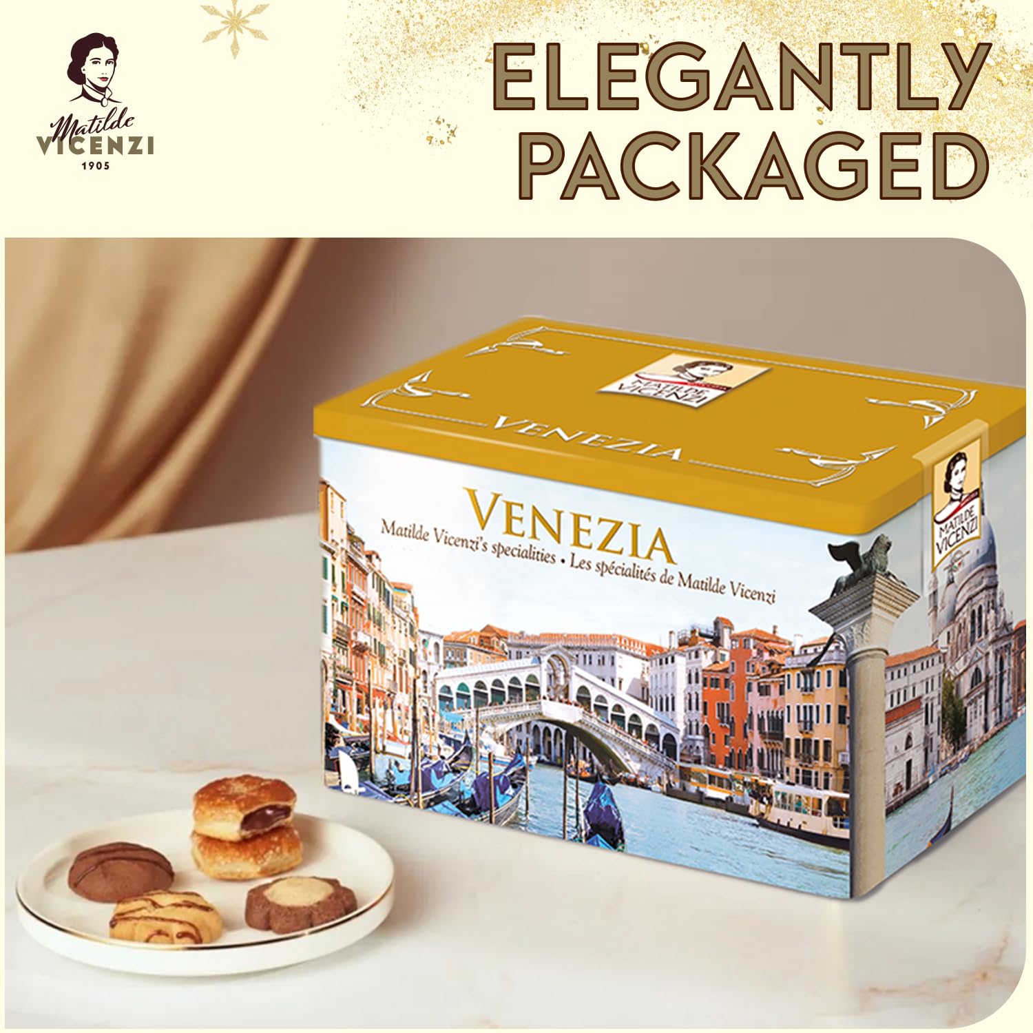 - Cookies Variety Pack - Enjoy yourself or share in the authentic taste of Italy with the Pasticceria Matilde Vicenzi Venezia Gift Tin. Filled with a delightful assortment of puff pastries, cream-filled pastries, and crispy Italian cookies, our gift tin makes an ideal gift for an indulgent sweet treat.