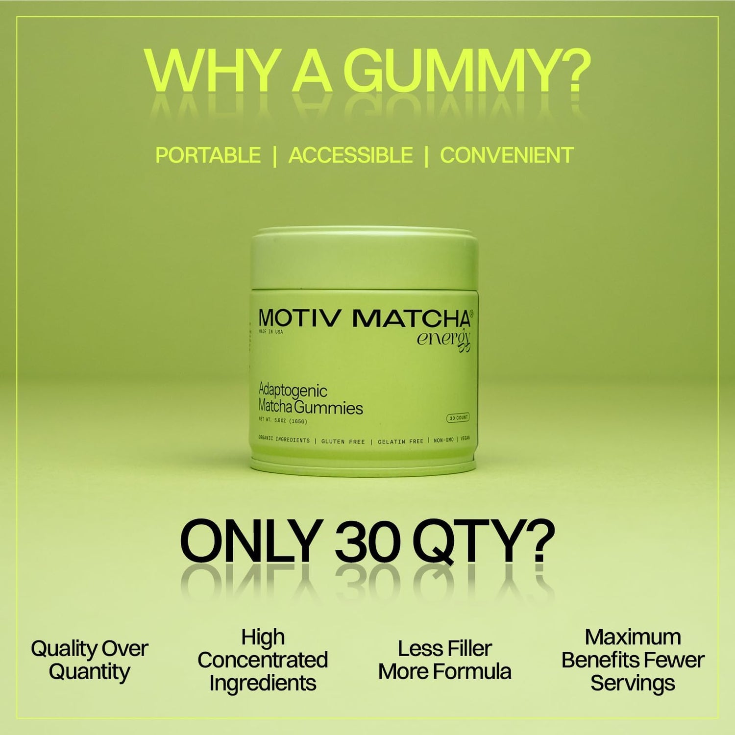 Motiv- Organic Matcha & Mushrooms Energy Gummies | 300 MG Concentrate Matcha Green Tea + Mushroom Blend | Improve Brain Function, Immune Support, Gut Health, Reduce Stress - Vegan, Non-GMO