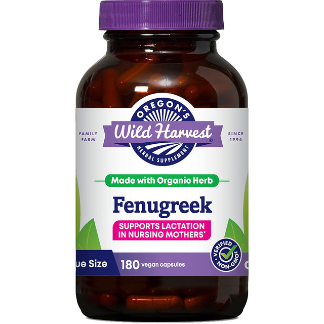 Oregon's Wild Harvest Organic Non-GMO Fenugreek Capsules, Lactation Support Herbal Supplements for Optimal Breast Milk Production-180 Count