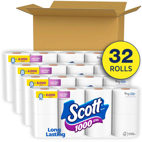 Scott 1000 Toilet Paper, 32 Rolls, Septic-Safe, 1-Ply Toilet Tissue