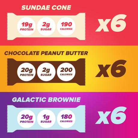Pure Protein 18 Count Variety Pack - Galactic Brownie, Sundae Cone, Chocolate Peanut Butter