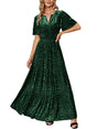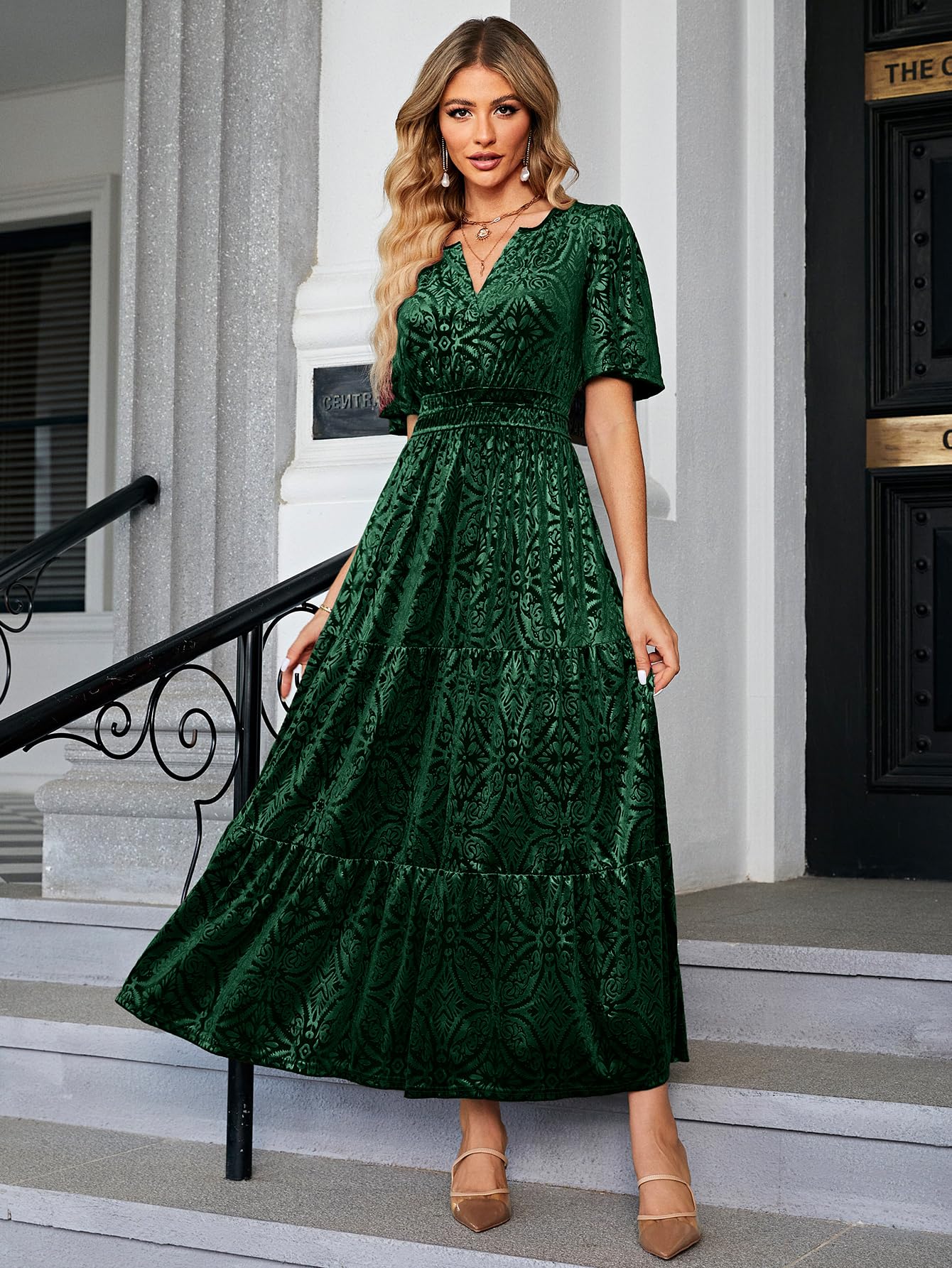 Amegoya Velvet Dress for Women Formal Winter Wedding Guest Dress Short Sleeve V Neck Semi Formal Party Christmas Dresses(Emerald Green L)