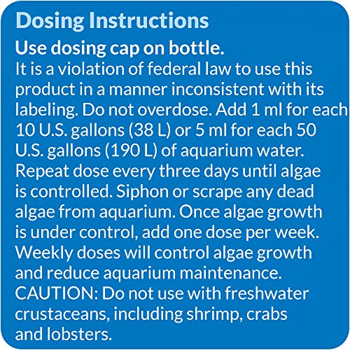Details: Treat and control algae growth and reduce your freshwater aquarium maintenance with API ALGAEFIX Algae Control Solution. This revolutionary product is specially developed to control many types of algae, including "green water" algal blooms and string or hair algae, and it will not harm fish or plants when used as directed. Weekly doses of API ALGAEFIX Algae Control Solution will control algae growth and reduce aquarium maintenance. To treat algae, add 1 ml per 10 gallons of water and repeat every three days until algae is controlled. Use this aquarium treatment weekly to keep freshwater aquariums clean and clear. API ALGAEFIX Algae Control Solution is not for use with freshwater crustaceans including shrimp, crabs and lobsters. With API Aquarium products, it’s easy to keep a beautiful saltwater, freshwater or reef aquarium. For over 50 years, API has been creating innovative, research-driven solutions that make it easier to care for your fish and aquarium. API Aquarium Treatment Supplies are designed to work in conjunction with each other to provide best results to control algae, promote healthy bacterial growth and help control and cure fish diseases and conditions such as ich and fin rot. They work to provide a safe, hospitable environment for fish such as tropical community fish, cichlids, goldfish and more. With API, you can spend more time admiring your fish, and less time scrubbing your tank. Make sure to use all products as directed in order to ensure the best results.