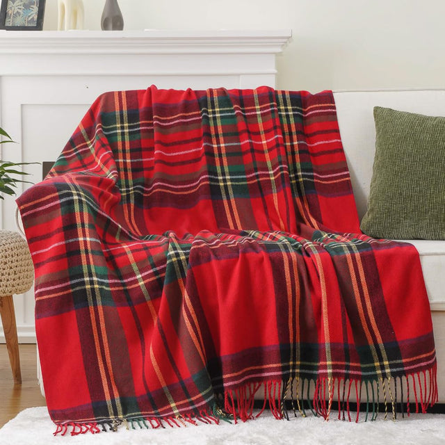 BATTILO HOME Christmas Red Plaid Throw Blanket for Couch, Bed, Super Soft Red Plaid Blankets,Soft Christmas Decorative Throw with Tassels 50"x60"