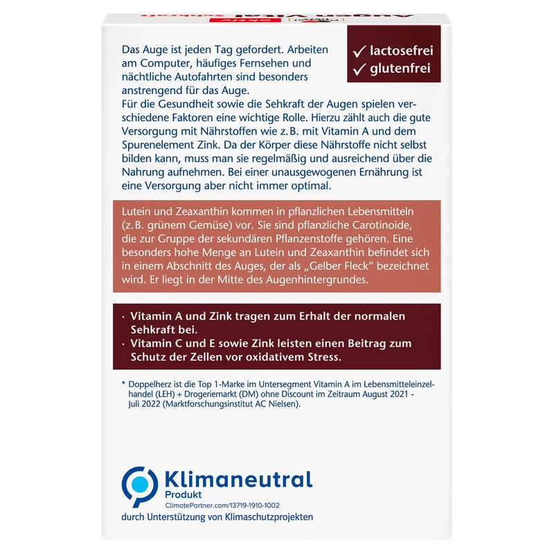 Doppelherz Eye Vital - With Vitamin A and Zinc as a Contribution to Maintaining Normal Vision - 30 Capsules