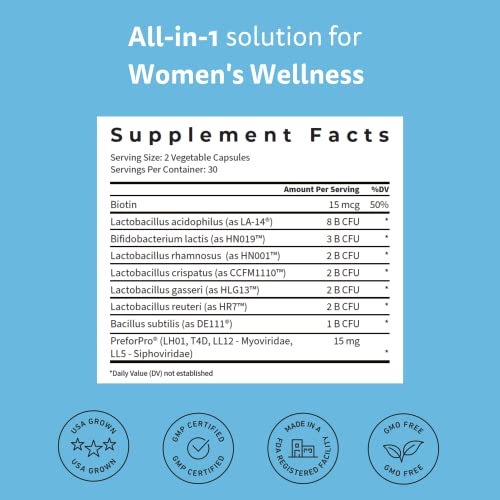 - VAGINAL AND URINARY PROBIOTICS FOR FEMININE HEALTH: Our clinically tested uro-viginal probiotics with Lactobacillus rhamnosus, crispatus and Lactobacillus reuteri have shown to help protect the vaginal flora and urinary tract against BV UTI and Yeast Infections.