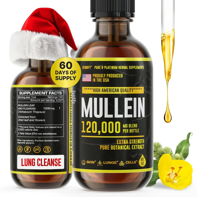 HERBIFY Mullein Drops - Lung Cleanse - Leaf Extract - Powerful Mullein for Immune Support,Detox & Respiratory Support - Made in USA - Herbal Supplements - 4 Oz