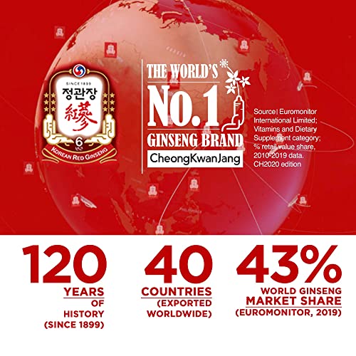 • CheongKwanJang - No.1 GINSENG BRAND IN THE WORLD - When it comes to a product like ginseng, you do not want to go with a no-name internet brand. KGC(CheongKwanJang) has been considered the top brand in the world for 120+ years! CheongKwanJang has perfected the Korean Red Ginseng creation process from soil cultivation to production to create the best ginseng product for you. Our master ginseng researchers ensure that only the best ginseng roots are harvested and used for production.