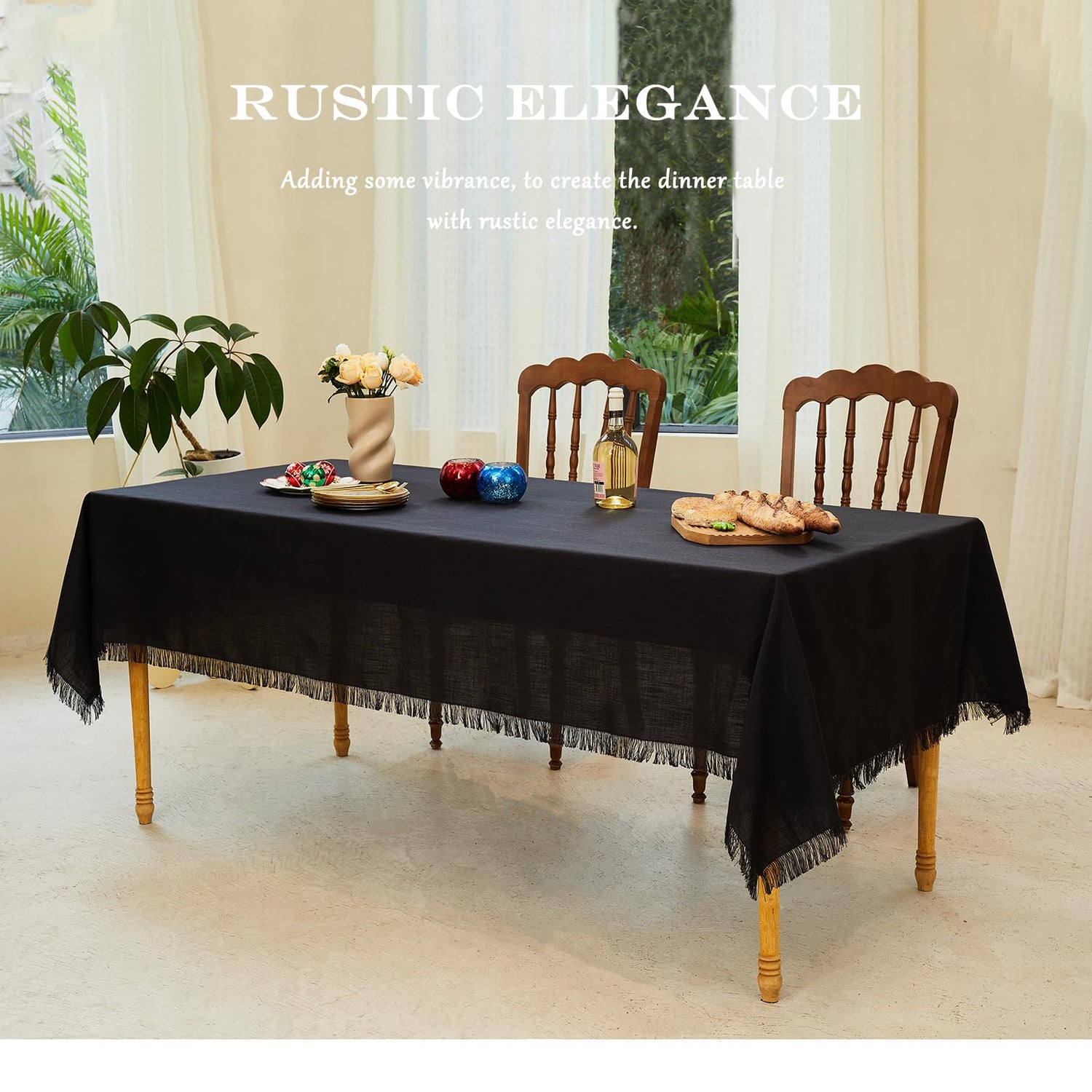 Midsummer Breeze Table Cloth Rectangle Table-Rustic Cotton Tablecloth Craft Fringed Farmhouse Table Cloths for Halloween Thanksgiving Christmas Kitchen Dining (55x70 Inch, Black)