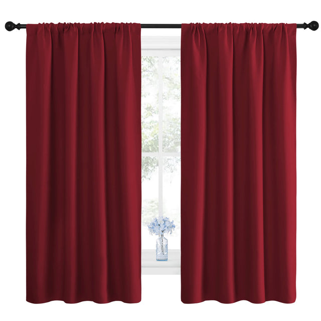 NICETOWN Christmas Burgundy Blackout Curtains and Drapes - Thermal Insulated Solid Rod Pocket Blackout Draperies/Panels for Gift (1 Pair, 42 by 63 inches, Burgundy Red)