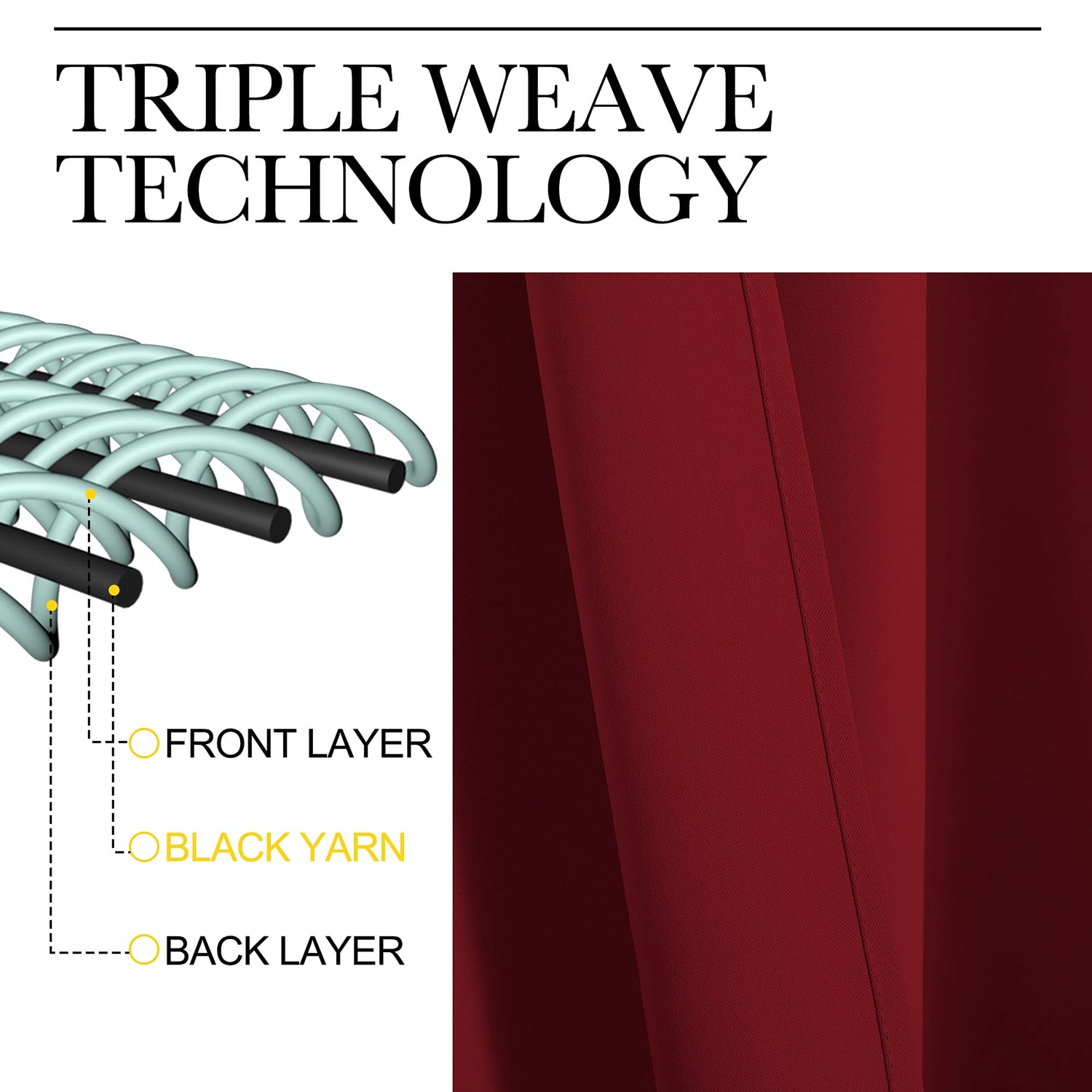 - AMAZING MATERIAL: This unique, soft and heavy-duty blackout fabric is woven with three-layer construction. The middle layer of black yarns creates a curtain panel that is excellent for blocking out 85%-99% of light (Dark color works better on blocking light) while providing privacy.