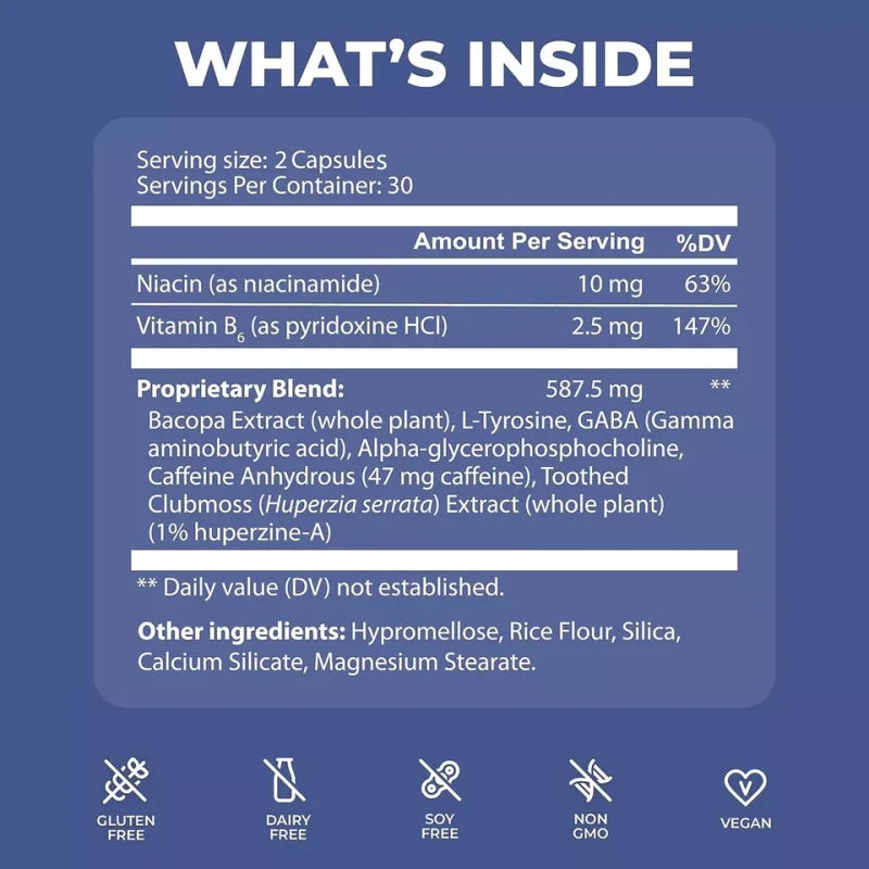 • Memory & Focus Support: Enhances memory retention, concentration, and focus for daily tasks.