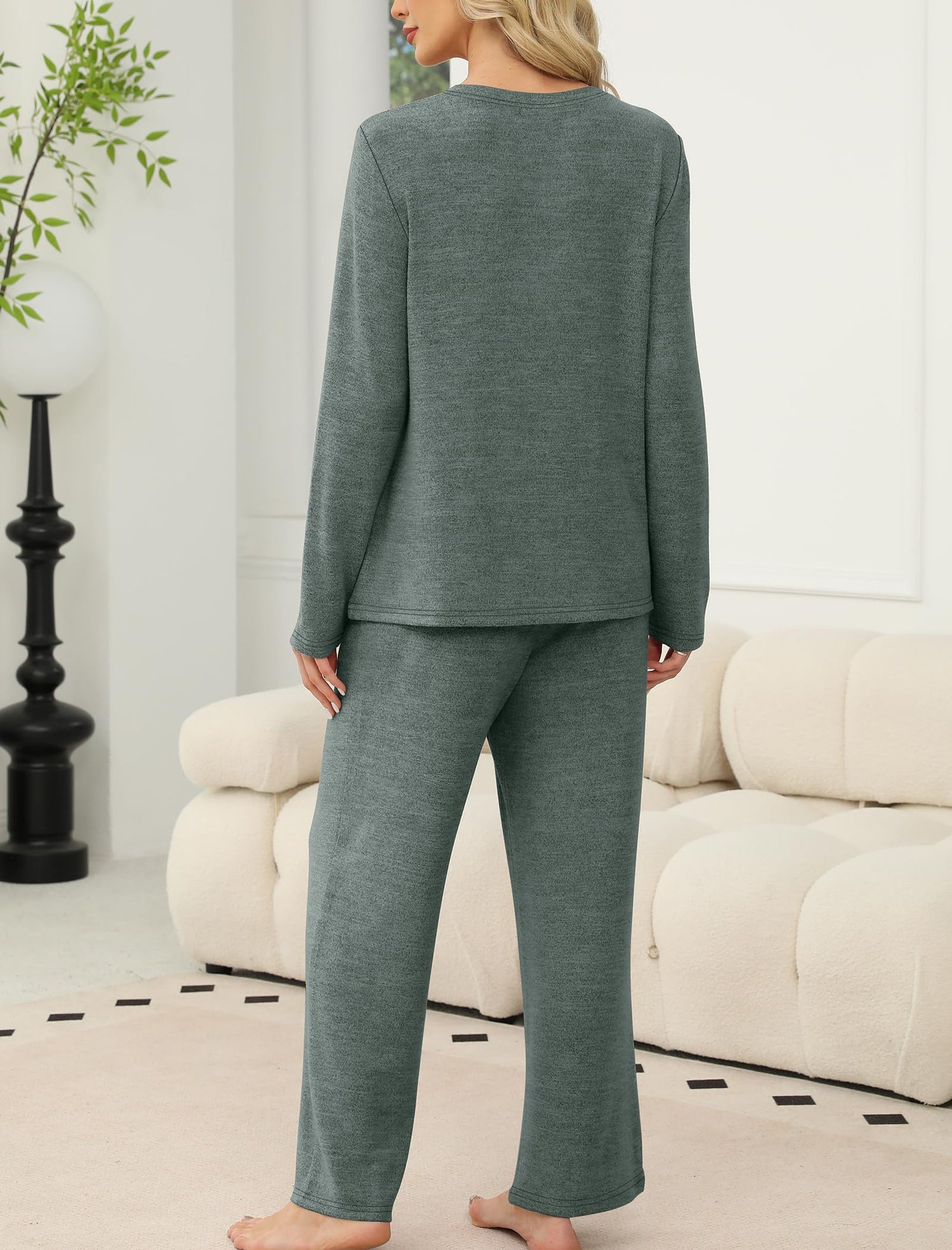 - ✦Design: Classic pajamas sets long sleeve, Crewneck Tops Loose Fit, Wide Leg Pants with Elastic Waistline (adjustable drawstring).