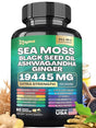 Sea Moss 7000mg Black Seed Oil 4000mg Ashwagandha 2000mg Turmeric 2000mg Bladderwrack 2000mg Burdock 2000mg & Ginger Vitamin C Vitamin D3 with Elderberry Manuka Dandelion Yellow Dock Chlorophyll ACV