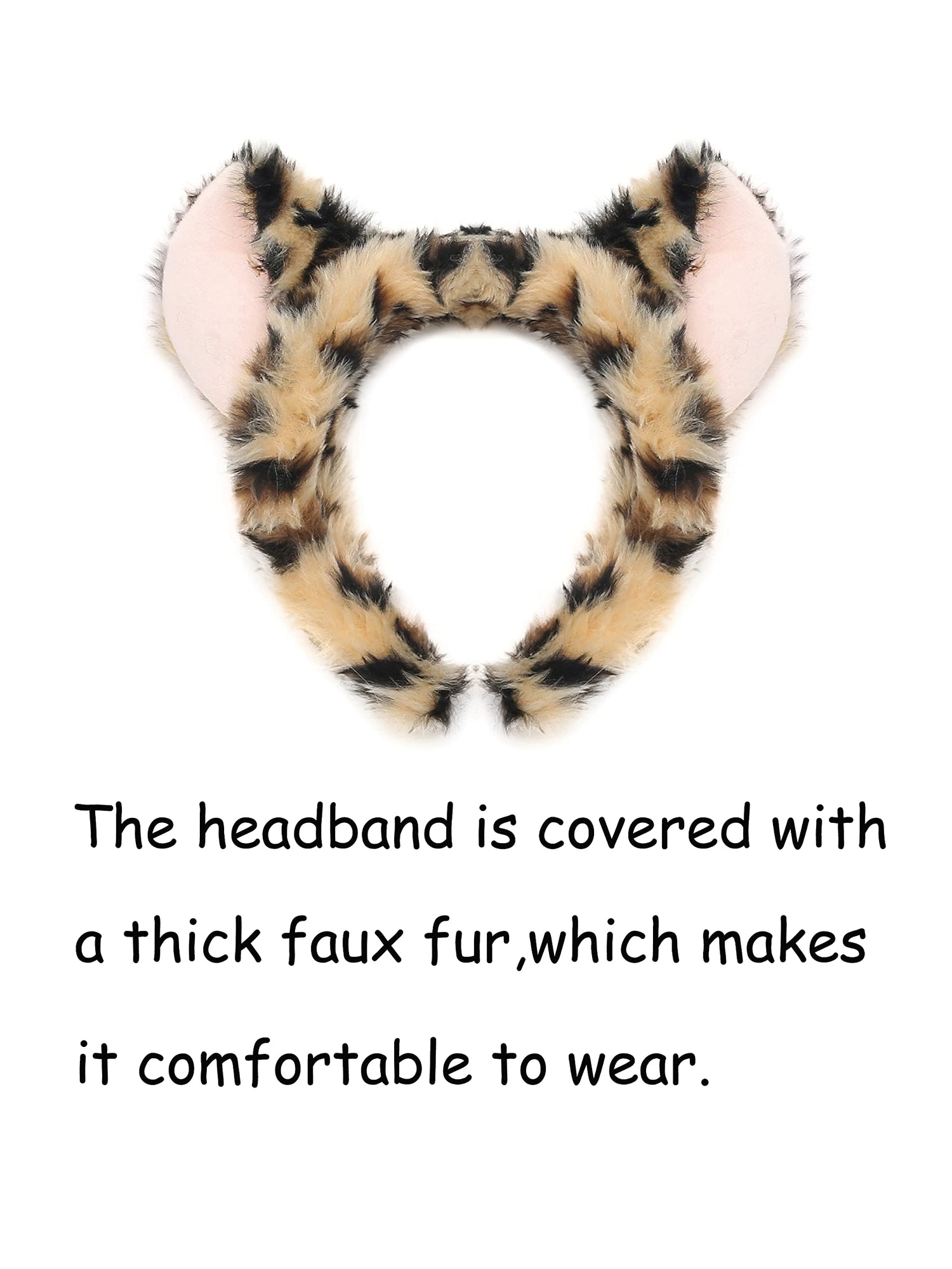 Soul Young Wolf Reindeer Lion Faux Fur Ears and Tail Halloween Costume Party Cosplay Christmas Animal Accessory Set (4pcs Leopard)