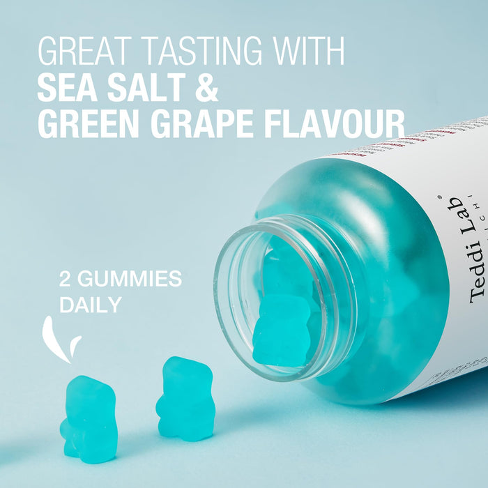 - SUPER TASTY VITAMIN GUMMIES: These hair gummies are great tasting with a sea salt and green grape flavour. They are low in fat and contain no added sugar, yeast or egg. They may contain traces of gluten, crustaceans, soybeans, milk, fish and tree nuts.