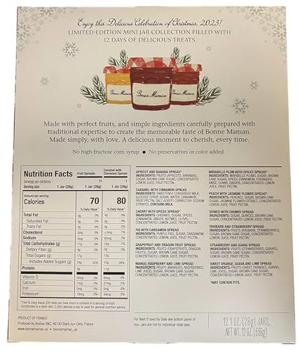 Bonne Maman 12 Days of Christmas Spread and Honey Gift Set - 12 Limited Edition Mini Spreads & Honey