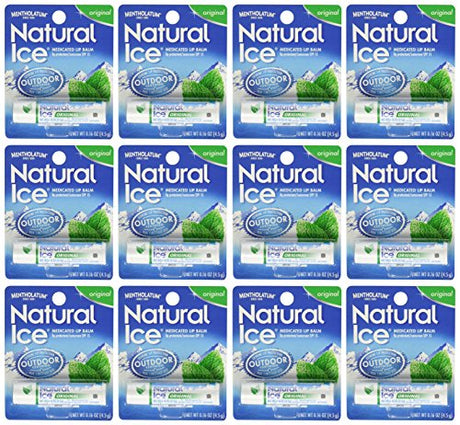 Mentholatum Natural Ice Medicated Lip Protectant Sunscreen, 0.16 Ounce (Pack of 12)