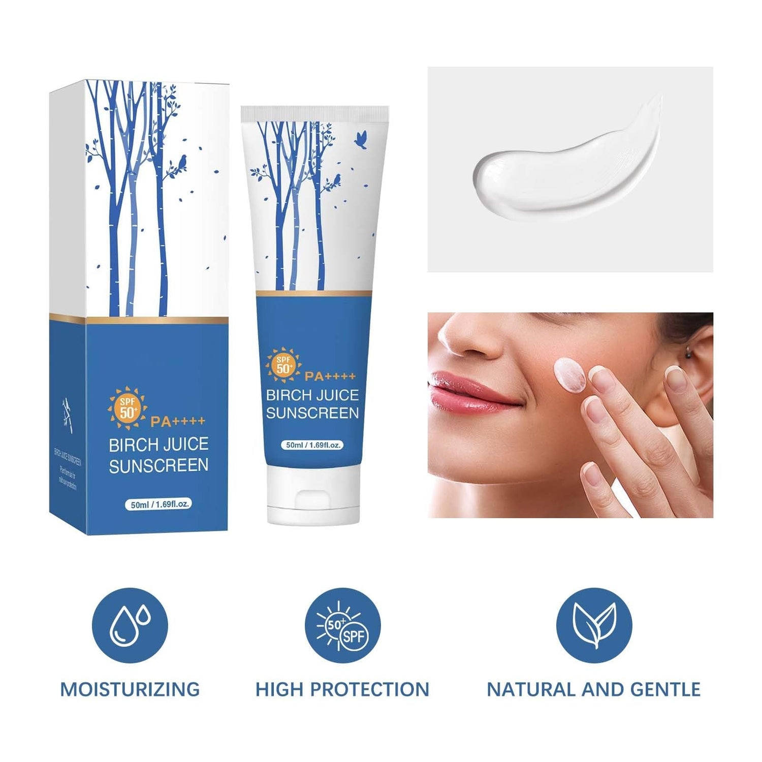 - SPF 50 Broad Spectrum Protection: Defend against UVA/UVB rays with our Birch Juice Moisturizing Sunscreen, offering high-level sun protection while keeping skin hydrated and safe from sun damage.