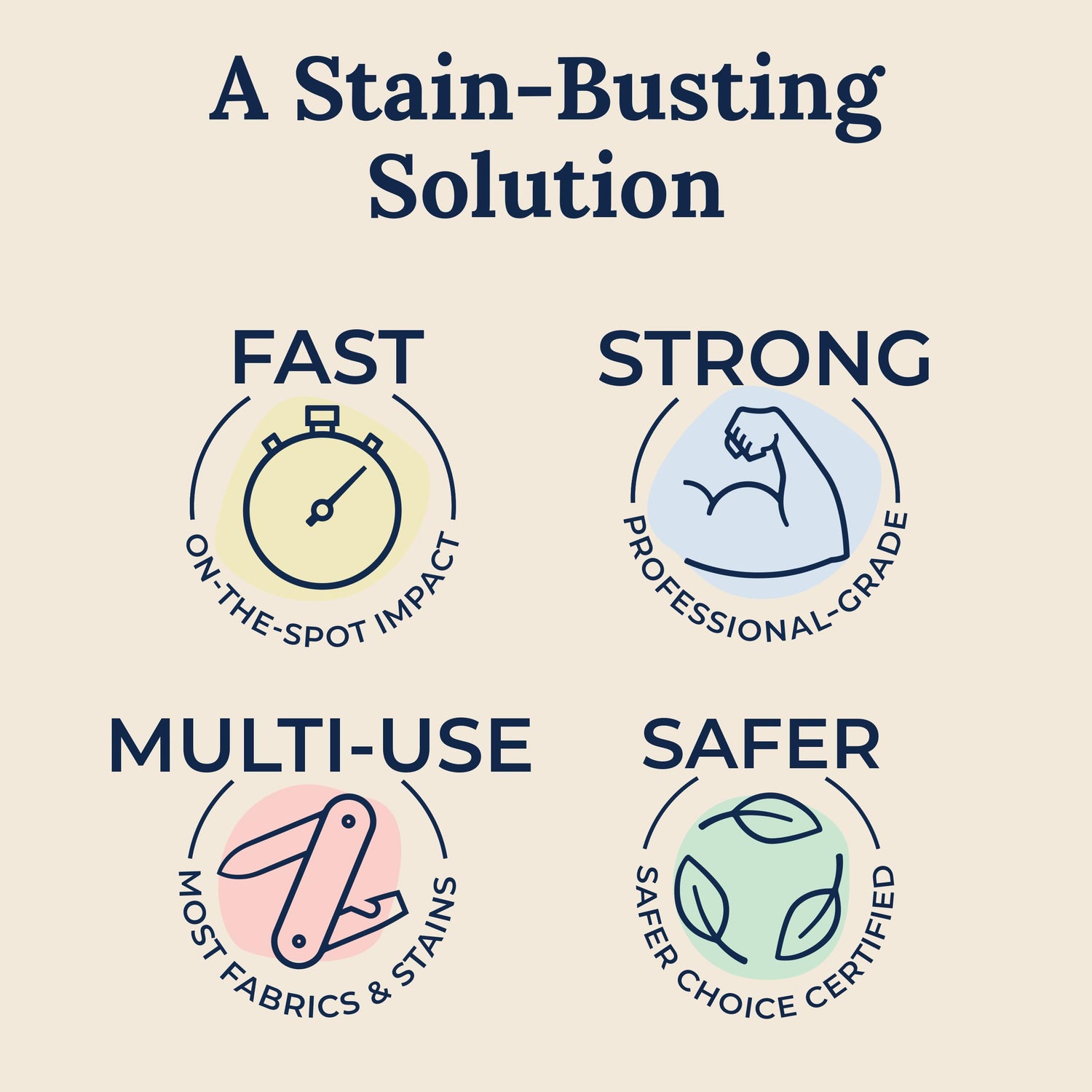 - POWERFUL & FAST WORKING This lightning fast laundry stain remover spray is perfect for clothes, upholstery, and carpets.