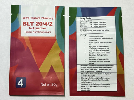 BLT (Benzocaine/Lidocaine/Tetracaine) 20/4/2 % in Aquaphor 20 gm packet each
