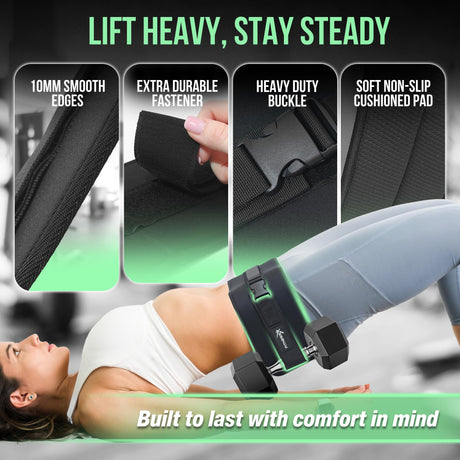 Designed for both beginners and experienced lifters, the FitBelt provides slip-resistant support, ensuring the dumbbell or weight plate remains secure throughout your hip thrust, glute bridge, or lower-body exercises. Its ergonomic design distributes weight evenly, preventing discomfort and reducing the risk of injury.